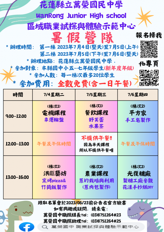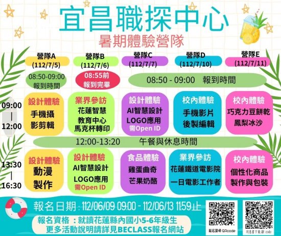 花蓮縣三所區域職業試探與體驗示範中心111學年度暑期營隊資訊