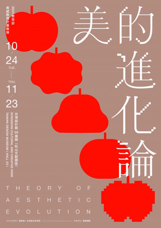 - 檢附「美的進化論-2023教育部美感教育計畫聯展」展覽主視覺一份,如有參展相關疑義,請洽:台灣設計研究院彭裕奎先生,電話:02-2745-8199,分機353。