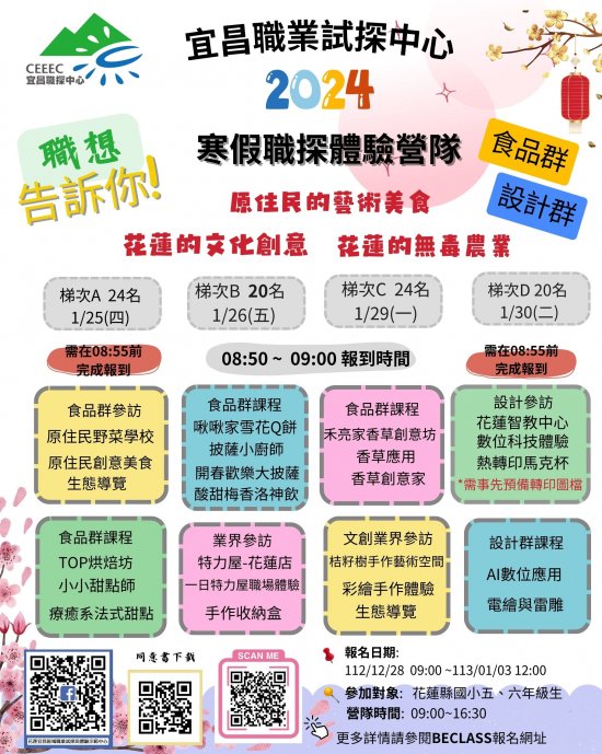 花蓮縣區域職業試探與體驗示範中心112學年度寒假營隊