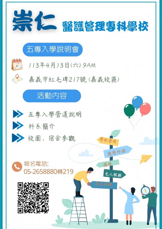 為協助國中家長及同學了解五專免試入學方式及各科特色,特舉辦「113 學年度五專免試入學說明會」。