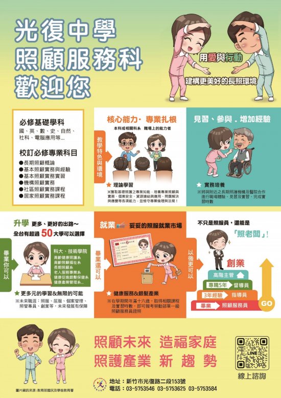 轉知新竹市私立光復高級中學新設照顧服務科簡介文宣