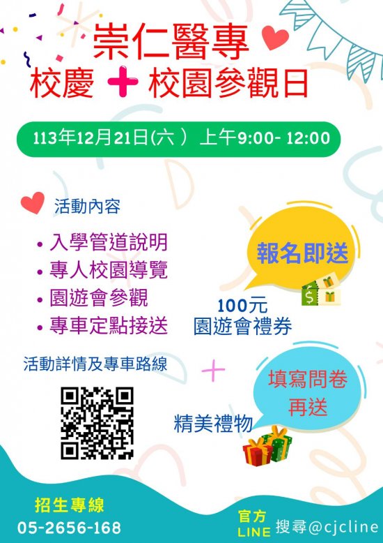 崇仁醫專校慶暨校園參觀活動邀請貴校師生及家長蒞校參加