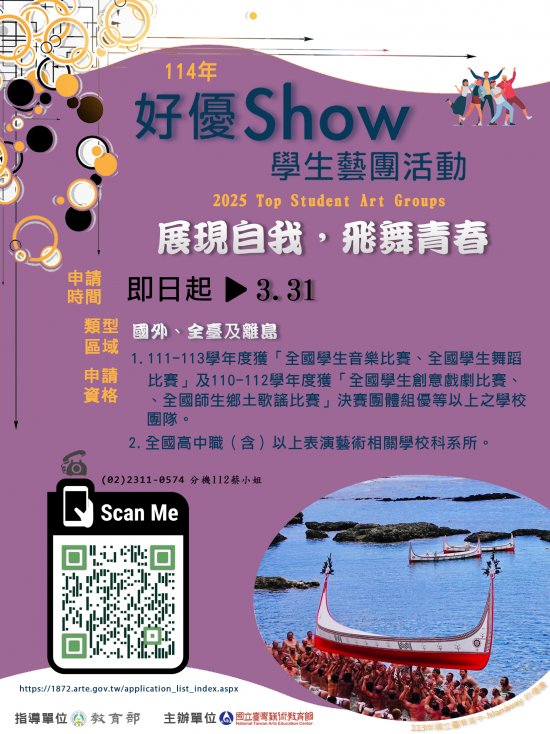 國立臺灣藝術教育館「114年好優Show學生藝團活動」徵選計畫書暨相關書表