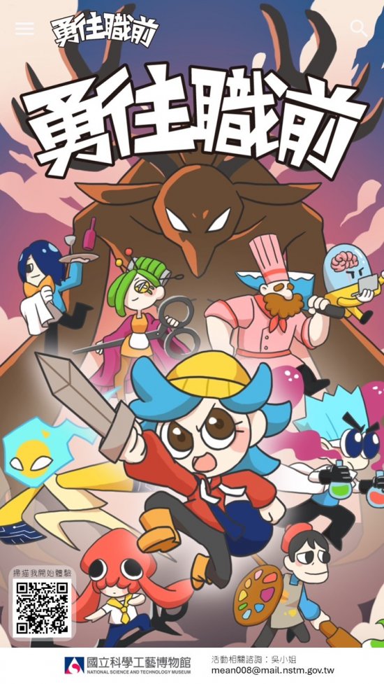 國立科學工藝博物館推廣技職教育,設置「勇往職前」技職15職群展廳串聯線上學習單,提供職涯探索,歡迎多加利用