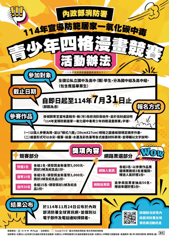 114 年宣導防範居家一氧化碳中毒青少年四格漫畫競賽