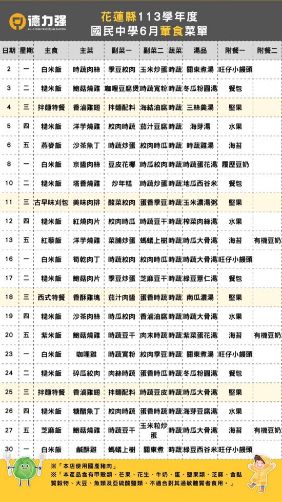 廠商通知:6/18葷主菜香酥雞塊調整為香滷雞翅