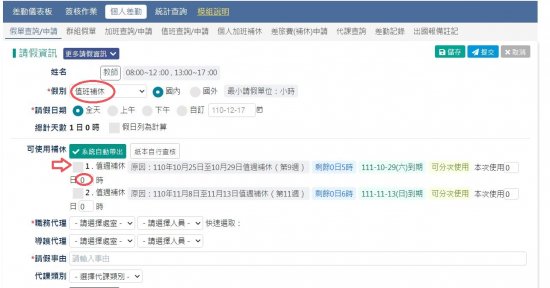 本學年度自110年9月1日起至12月10日止之教師值週補休時數,業已登錄智慧差勤系統完竣,請值週教師自行查閱使用。