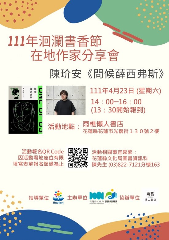 【更改為線上會議】111年洄瀾書香節-在地作家陳玠安《問候薛西弗斯》新書分享會